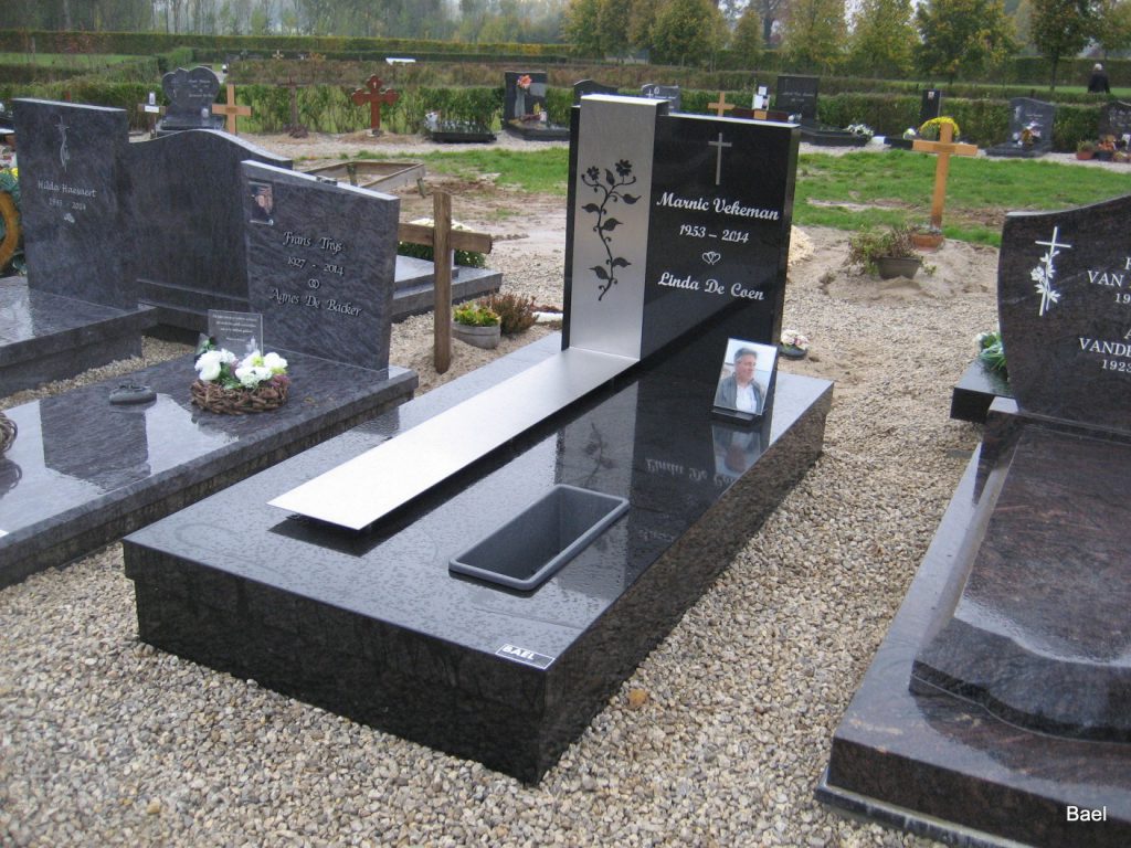 Zowel klassieke als moderne grafmonumenten in een combinatie van graniet / arduin met glas of inox zijn mogelijk.